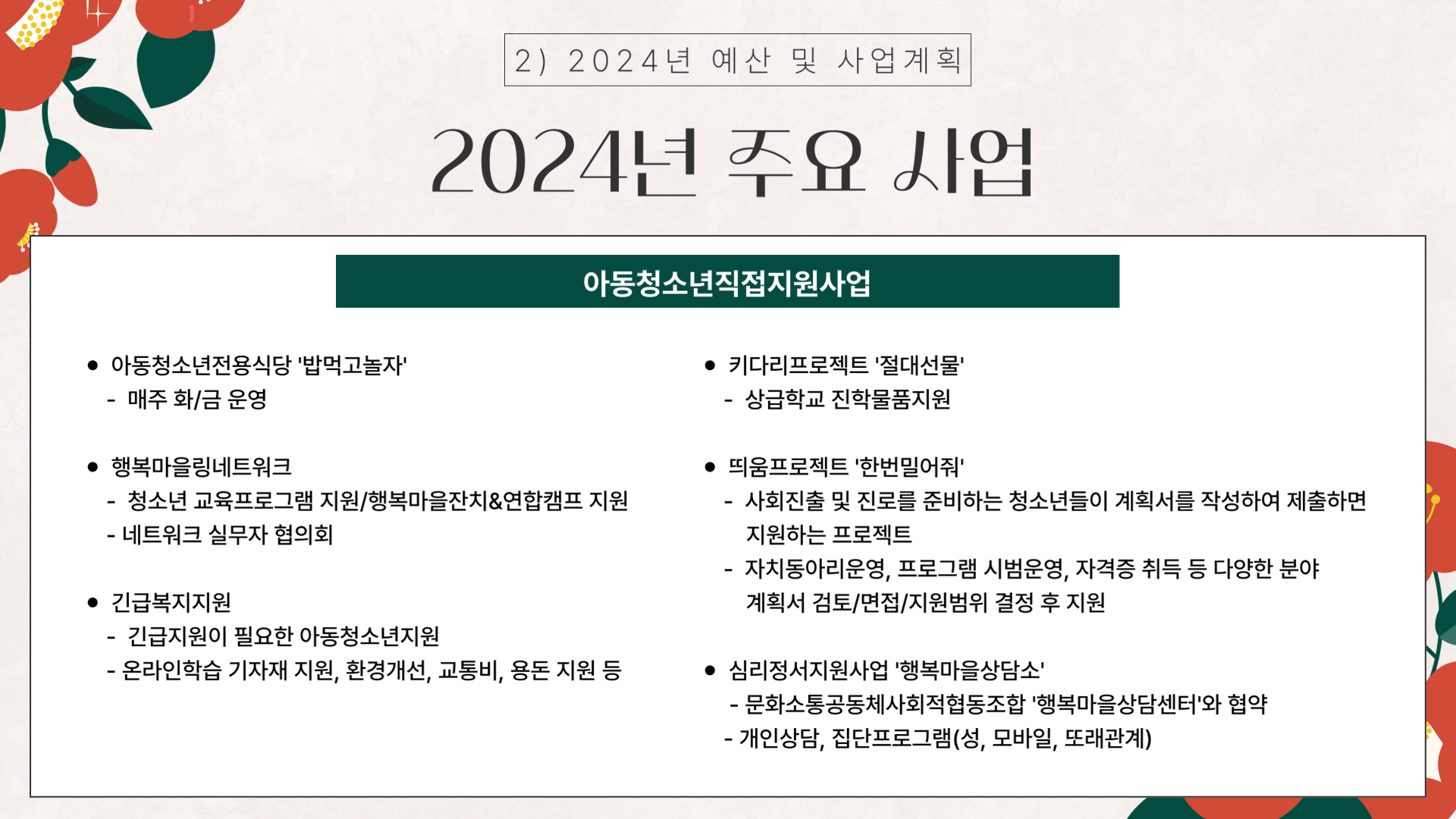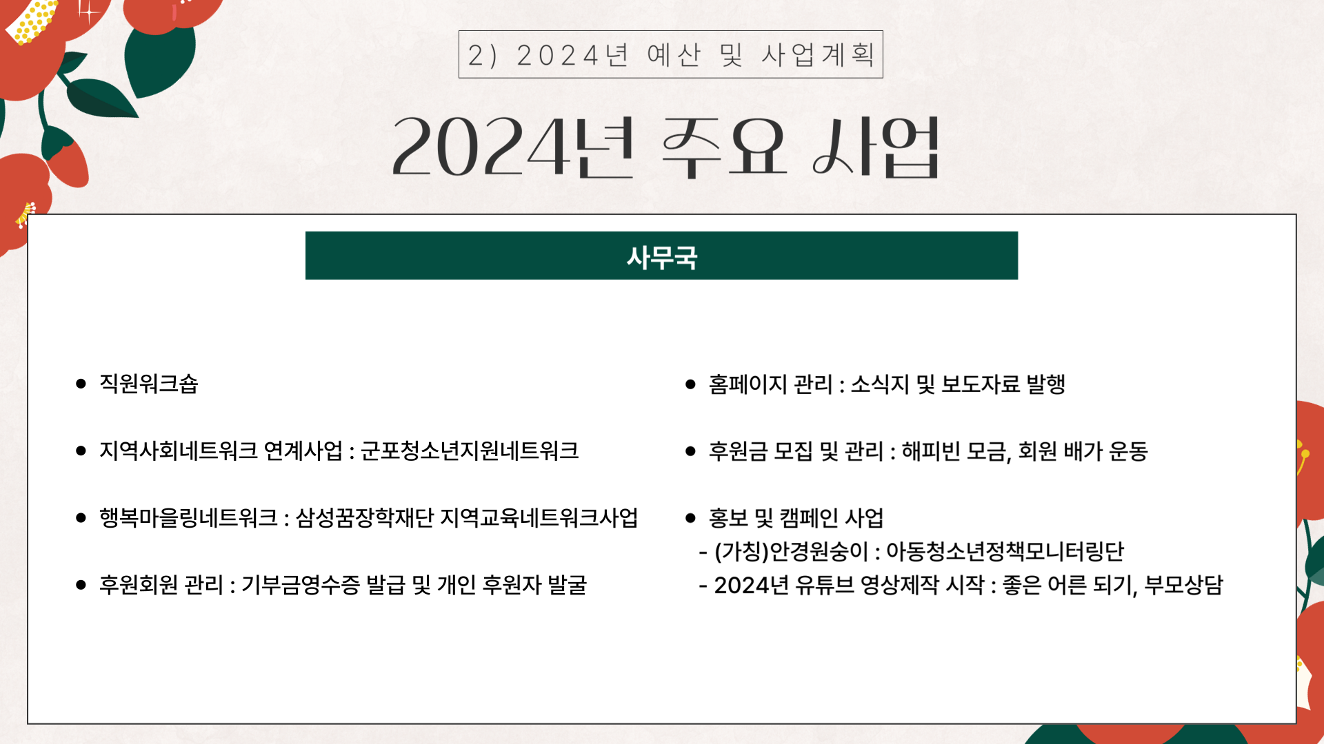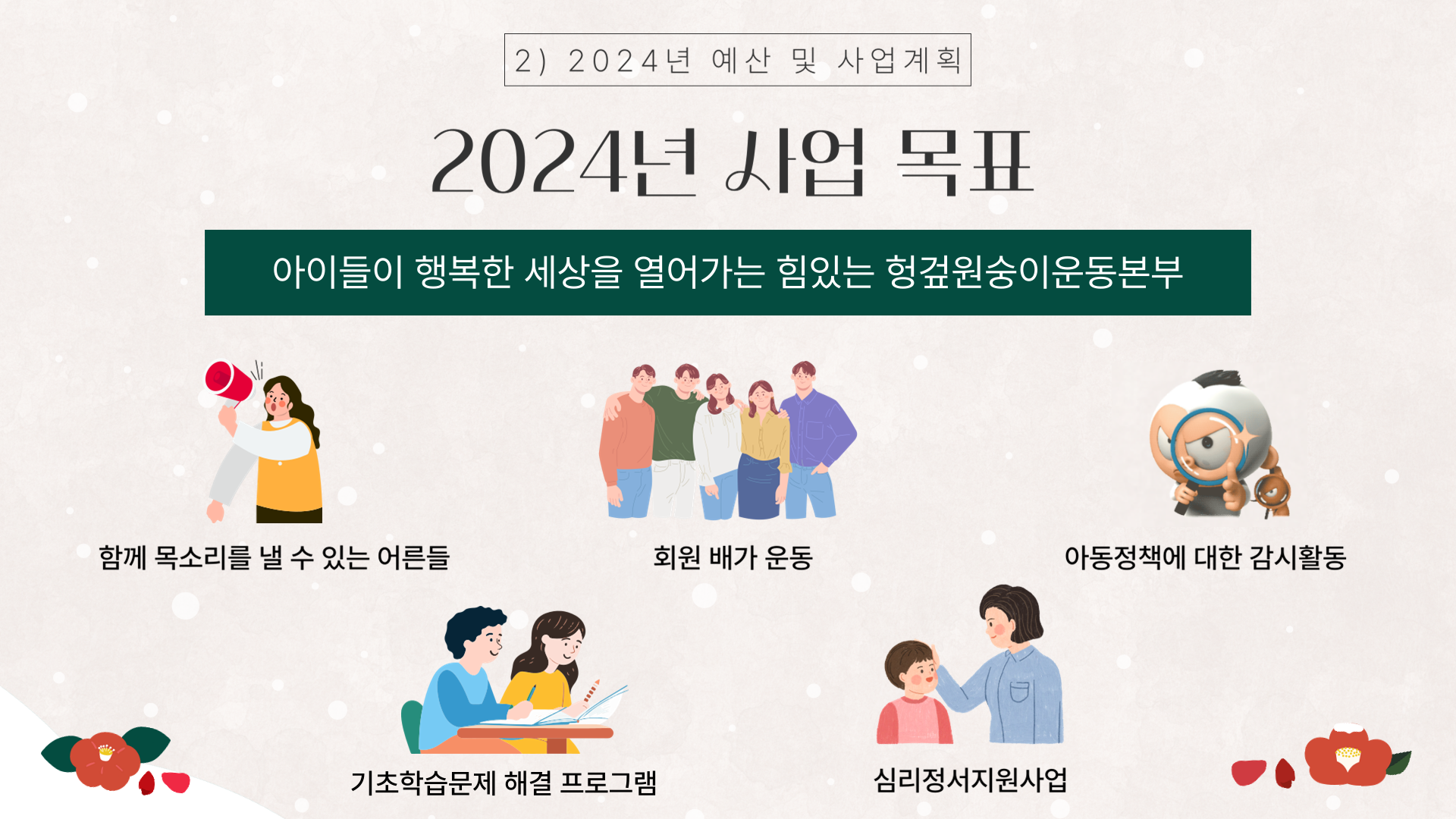 2024년도에도 아이들을 위한 좋은 어른들이 많아지는 세상을 꿈꾸며 열심히 하겠습니다.