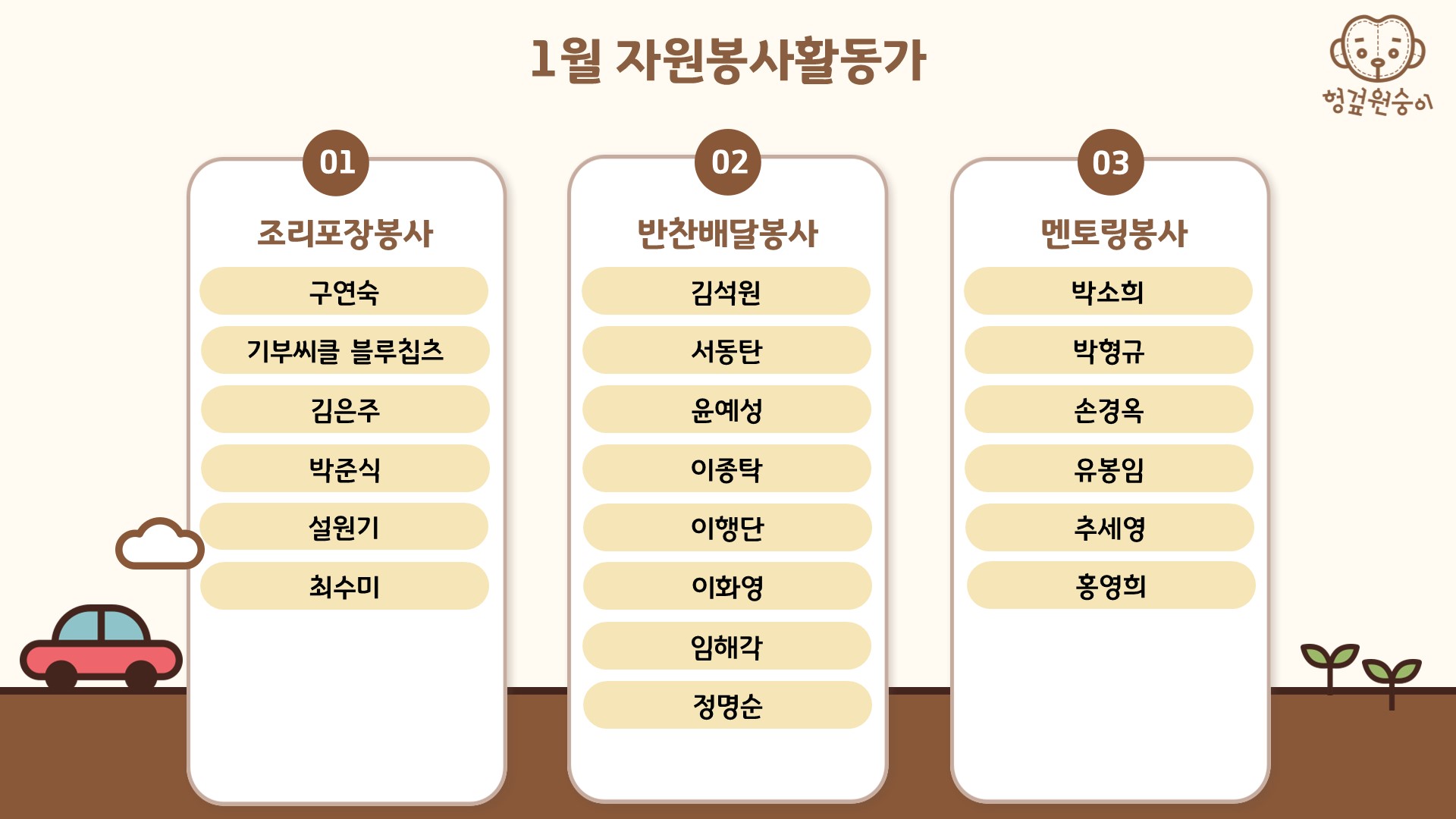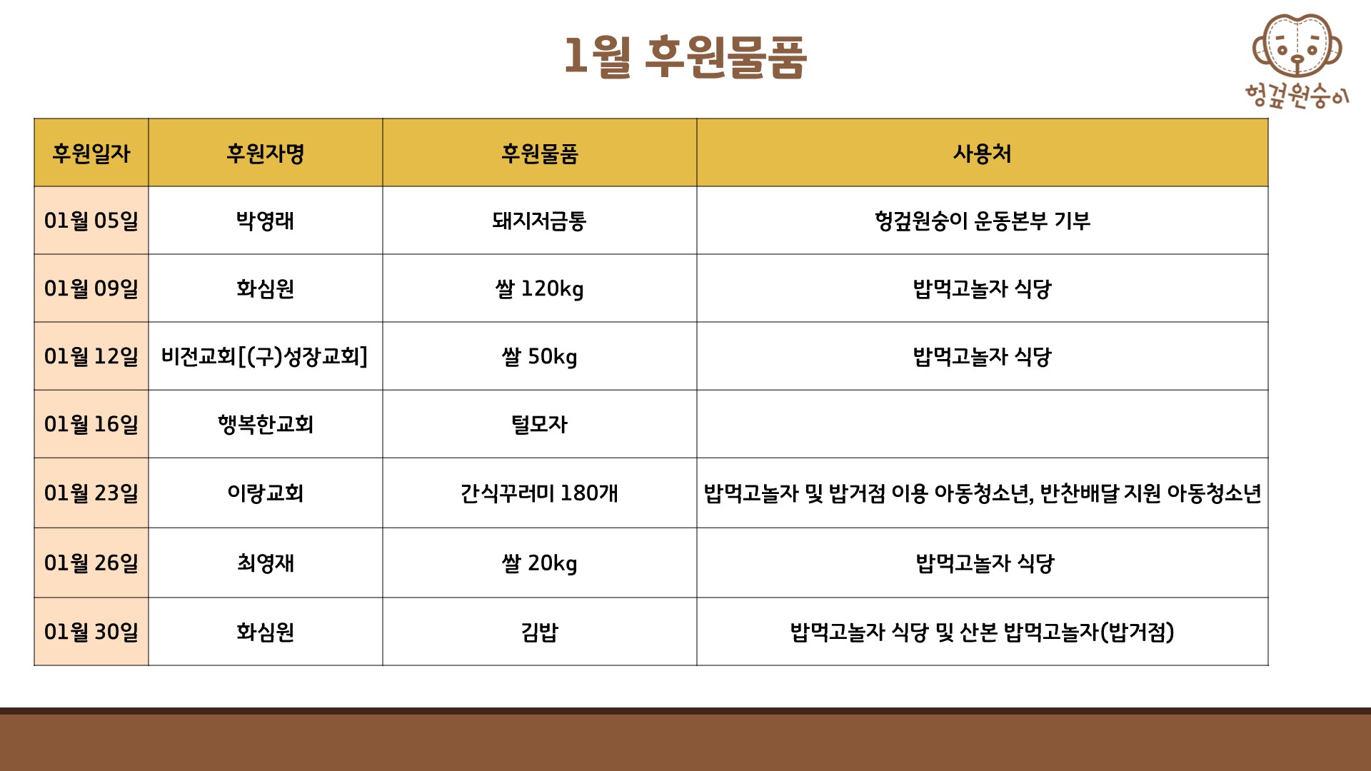 1월 후원물품 후원자&사용처, 아동청소년직접지원사업비 사용내역, 자원봉사자 명단 올려드립니다.