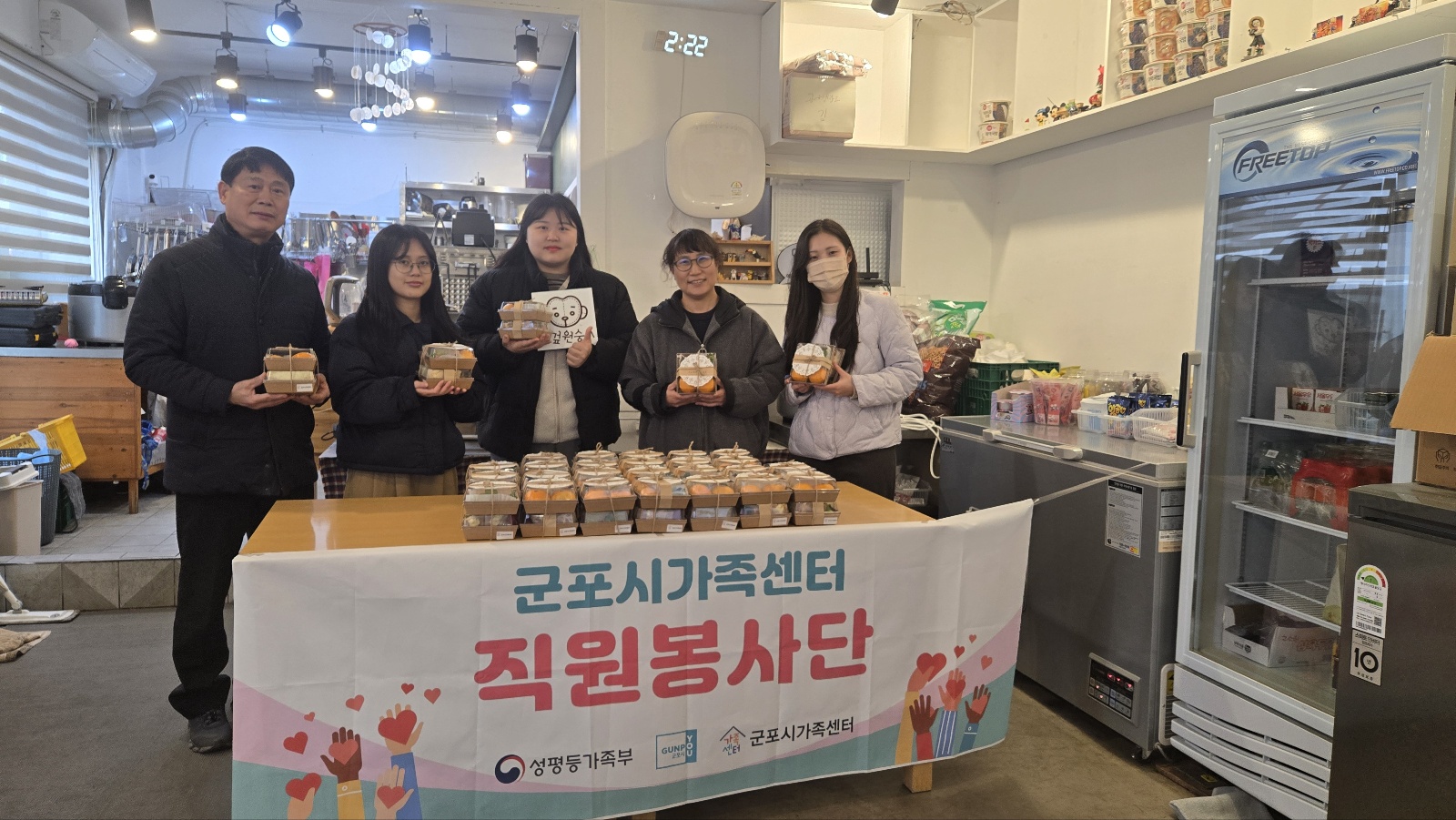 군포시가족센터 직원봉사단 분들이 오전부터 정성스럽게 만들고 포장하신 샌드위치와 과일 30개 세트를 공유냉장고에 후원해주셨습니다.